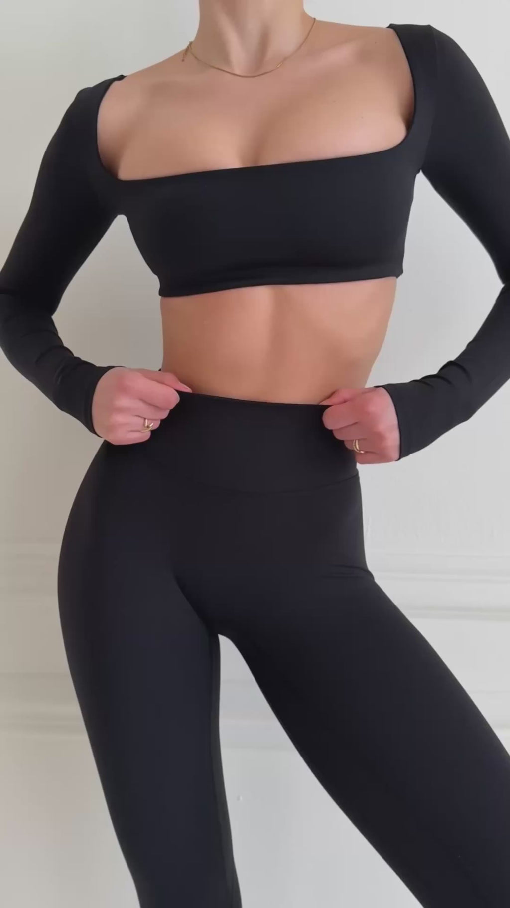 Minimalist edge with a sculpted finish. This long-sleeve crop top features a square neckline, body-contouring fit, and full-length sleeves for sleek coverage. Made from smooth, stretchy fabric that moves with you—perfect for layering or wearing solo from studio to street.