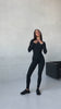 Introducing one of the most luxurious jumpsuits that is designed to make you feel confident and comfortable during any workout. This jumpsuit features a figure-flattering design with elegant seams that contour your curves in all the right places, giving you a streamlined and hourglass silhouette. Its open back adds an alluring touch of seduction, making this catsuit perfect for those who crave both practicality and beauty. Our jumpsuit also includes raglan long sleeves for extra warmth, and the timeless crew neckline makes it ideal for layering or wearing alone. Its secure closure at the back allows for easy putting on and taking off, all while maintaining the elegance of the design.