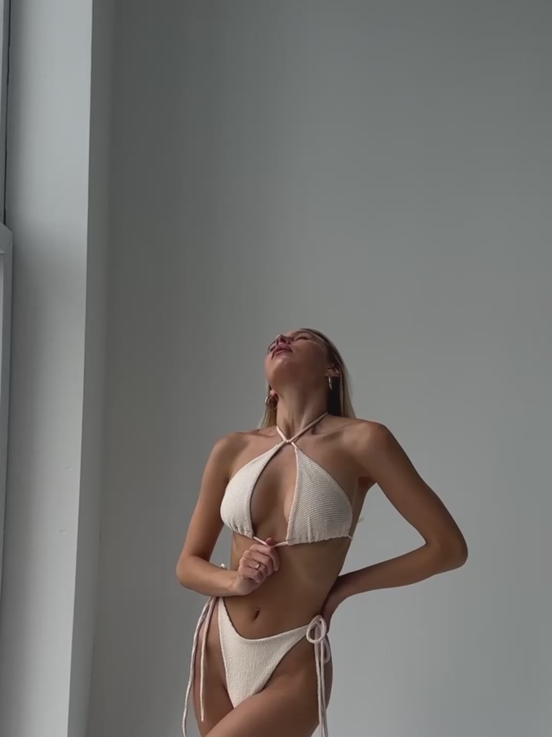 Piña Colada Crinkle Triangle Bikini Set in Ivory